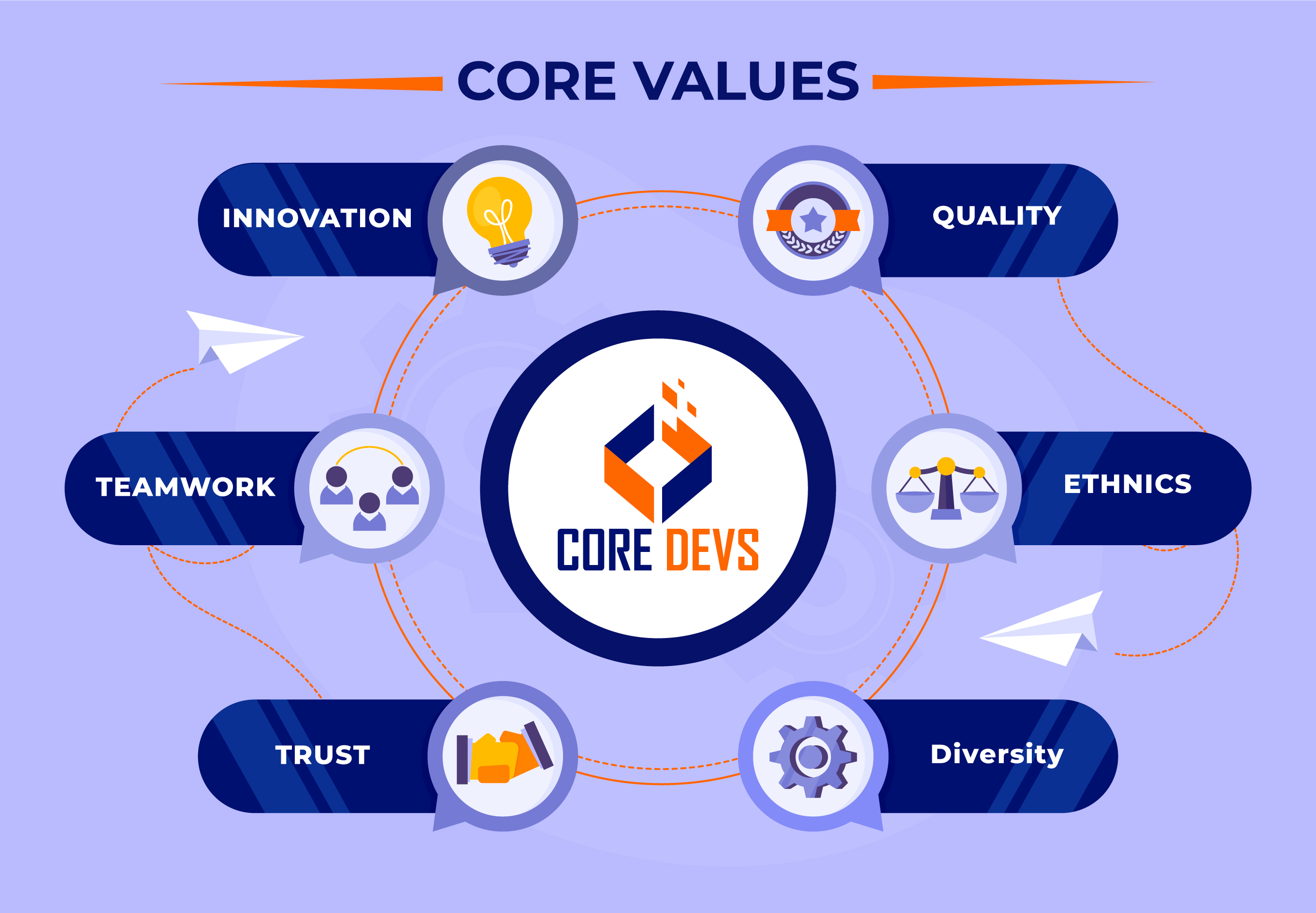 Our primary responsibility is to deliver maximum value to our customers. In pursuit of this goal, with our dedicated teamwork, we commit ourselves to take the leadership both in the development and in the innovation of web solutions. To adhere in letter and spirit to the technical requirements and laid down systems which is essential for our products to consistently be the first choice of our customers through inbuilt quality and on-schedule delivery. Core Devs quality commitment programs support both our customers and internal quality requirements, by the following standards.